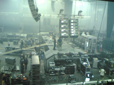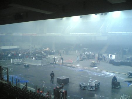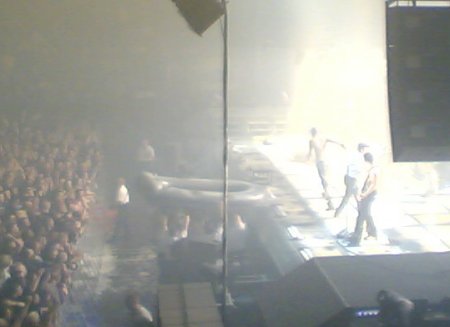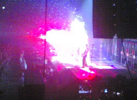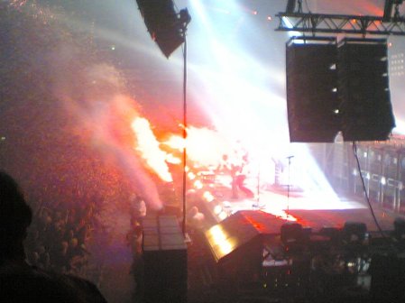 Ein bisschen schade war, dass unsere superdupa-Karten uns (Andi, mich und die Tochter eines Kollegen meines Vaters) leider nicht dazu ermächtigten in den Innenraum zu gelangen. So waren wir dazu „verdammt“ dem ganzen Treiben von oben aus zuzuschauen ;-) Und dort unten ging es mal so richtig ab. Rammstein eben! Pyrotechnisch wurde so ziemlich alles geboten, was man erwarten kann. Flammenwerfer, Feuerwerk und und und … geil war’s.
