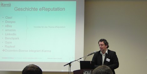 Marco Ripanti, der auch schon die letzte Diskussion geleitet hat, hält einen interessanten Vortrag über iKarma und digitale Identität. IKarma ist ein Dienst der die verschiedenen Identitäten, die man im Netz angesammelt hat. Gläserner Bürger 2.0? Klingt aber auf jeden Fall interessant für so Netzschlampen wie wir Blogger es zu einem gewissen Grad ja sind :-)