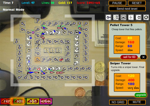 Irgendwie erreichen einen diese Zeitfresser (vormals Kdice) doch immer … dieses mal heißt es: Desktop Tower Defense und ist extrem kurzweilig. Um mal kurz ab- und/oder umzuschalten ideal. Langzeitmotivation ist praktisch nicht vorhanden, aber es hat diesen Tetrisflair trotzdem bereits gesehener Endanimation immer weiter kommen und immer besser werden zu wollen. Der Beweis dafür, dass auch simpelste Spielideen großes Potential haben ;-)