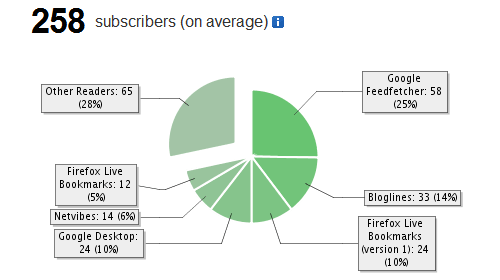 Was den Artikelfeed angeht sagt ein Bild wahrscheinlich mehr als 1000 Worte. Im Schnitt 258 Leser und das relativ konstant. Am besten Tag hatte ich beinahe die 300 geknackt, aber es wollte nicht :-) Warum das allerdings überhaupt so „stark“ hin- und herschwankt wissen wohl nur Feedburner und Google (seit neuestem).