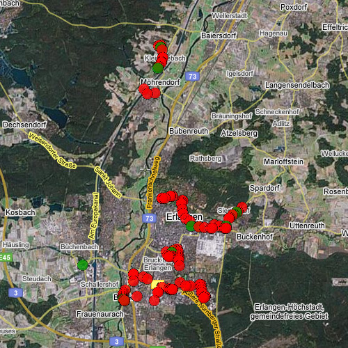 Vor knapp 3 Jahren bin ich mal mit GPS und einem WLAN-fähigen Gerät durch Möhrendorf und Erlangen gefahren um die Funknetze, die von der Straße aus erreichbar sind zu kartographieren. Damals waren noch knapp über 40% der Accesspoints unverschlüsselt.