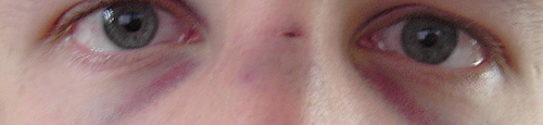 Der Unfall mit der Nase breitet sich auf die Augen aus … bäääh. Ich seh aus wie ein Verbrecher ;-) Moshen für den Weltfrieden und so *g*