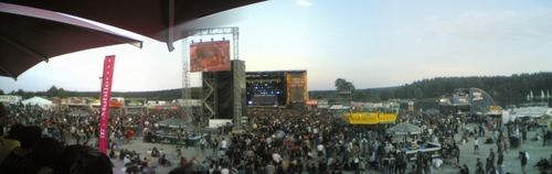 Das Highfield Festival liegt idyllisch an einem Stausee bei Hohenfelden (daher der Name) in der Nähe von Erfurt. Der riesige Zeltplatz mit viel Freiraum befand sich direkt oberhalb der Bühne und so konnte man auch dann die dortige Musik hören, wenn man gerade nicht anwesend war. Da die Laufwege aber deutlich kürzer als bei Rock im Park waren war es kein Problem schnell hinzukommen (war bei Billy Talent nötig, weil sie früher angefangen haben als auf dem Plan stand). Die sanitären Anlagen waren kostenlos benutzbar und deutlich zahlreicher vorhanden als bei RIP und deshalb musste man auch nie wirklich lange anstehen … find ich sehr gut!