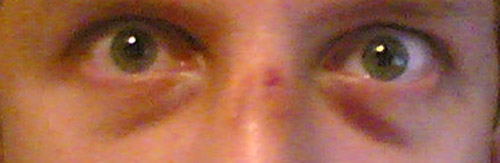 … auch wenn nur mit dem Handy fotographiert, kann man es halbwegs erkennen. Dunkler als vorher und hoffentlich bald weg. Die blauen Flecken am Körper sind mittlerweile alle gelb geworden und dürften wohl bald wieder weg sein. Moshen für den Weltfrieden ;-)