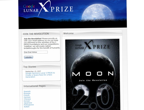 Wie ich gerade gelesen habe finanziert Google tatsächlich einen X Prize für einen Mondflug. $20000000 gibt es für das Team, das als erstes ein Fahrzeug auf den Mond schmeißt, damit einen 500 Meter Sprint hinlegt und dann einen so genannten Mooncast vom Mond zur Erde funkt. $5000000 gibt es für den zweiten und nochmal das gleiche für „additional tasks“, wie z.B. ein Foto von Apollo Missionen oder eine weitere Strecke zurücklegen, etc.