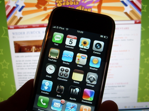 Nach dem Auspacken, musste ich dann feststellen, dass iTunes auf meinem PC wirklich spinnt. Es fragt immer wieder nach dem Passwort für den iTunes Store und hat die Treiber für das iPhone nicht mitinstalliert. Die habe ich dann über die Installation auf einem Laptop bekommen, was nicht ganz einfach war. Erst am Donnerstag Abend klappte die Verbindung zu meinem iPhone und ihr könnt euch gar nicht vorstellen wie erleichtert ich war. 20 Minuten später war das Handy dann mit dieser Anleitung aktiviert und entsperrt, so dass meine Simyo-Sim-Karte loslegen konnte. Dort kostet das Megabyte 24 Cent und bisher habe ich trotz 2 Tage Benutzung nur 2,5 MB verbraucht. Flatrate lohnt sich wohl wirklich nur für Dauersurfer, aber das dürfte der Akku nicht lange mitmachen. Heute hielt er z.B. nur knapp den Tag über … man muss Wlan wohl ausgeschaltet lassen, wenn man das Ding wirklich als Telefon benutzen will ;-)