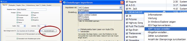 Also mein Problem ist, das wenn ich unter Erweitert die AIFF-Version erstellen möchte, das ich das nicht anklicken kann. Also das ist nur leicht grau dargestellt und geht halt nicht. Warum ?