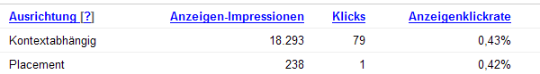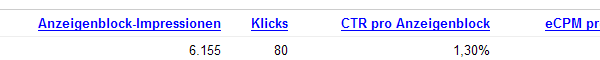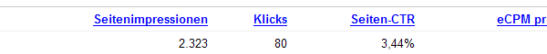 In der Statistik von Google Adsense sieht man auf den ersten Blick immer nur die Klicks pro Seitenimpressionen. Das sieht dann meistens gar nicht so schlecht aus: