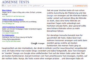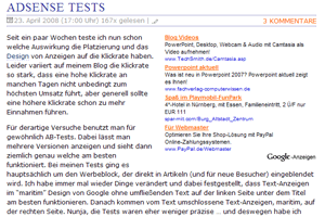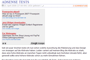 […] Sebbi zur Zeit schon fleißig testet, mit welchen AdSense Anzeigen sich die besten Ergebnisse erzielen lassen, probiere ich auch […]