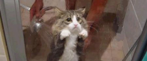 die arme…. sieht ja nicht gerade so aus, als würde sie die dusche genießen….
