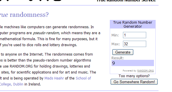 And the Oscar Mensagutschein goes to Manuel Wolff, denn random.org spuckte bei 32 Fans die Nummer 9 aus und laut meiner Adminliste bist du Nummer 9 … tata, einmal freier IQ-Test in einem Raum mit lauter Freaks für dich ;-)
