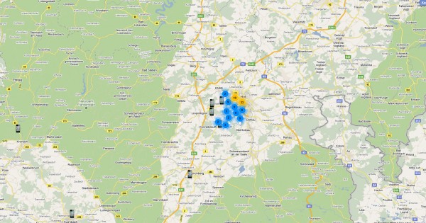 Allerdings befindet sich in meinen Daten ein eigenartiger „Batzen“ bei Hof. Ich war dort nie und schon gar nicht zu der Zeit, die angegeben ist. Dafür spricht auch, dass in der Umgebung kaum Mobilfunkmasten aufgezeichnet wurden, nur in Hof selbst. Sehr eigenartig … hat hier T-Mobile vielleicht einige Basisstationen aus Hof irgendwo anders in der Republik verteilt und Apple denkt sie wären immer noch dort?!