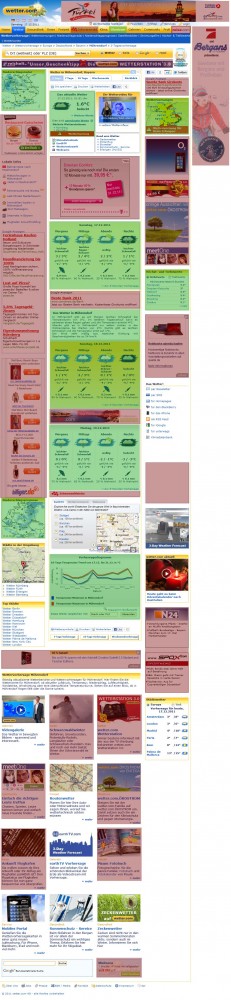 http://www.wetter.com muss man mal zugute halten das trotz der vielen Werbung wenigstens noch die eigentliche Info zu finden ist. Das ist längst nicht mehr selbstverständlich. Mitunter kommt es mir vor das sich Webseitenbetreiber sagen: je weniger Info auf der Seite um so eher wird die Werbung geklickt!