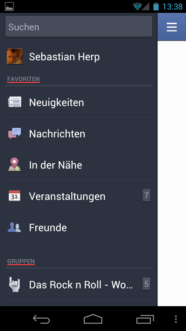 Wie bekannt sein dürfte besteht die Facebook App auf so gut wie allen Systemen aus einer Webview, die einfach nur HTML anzeigt und fertig. Im Menü (nativ) werden allerdings Auswahlpunkte von der Rechtschreibprüfung unterstrichen und in meiner Profilansicht wird der obere Teil zu breit dargestellt, d.h. er ragt aus dem Bildschirm recht hinaus.