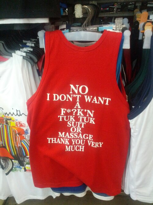 Abends geht es nach ausgiebigen Festmahl (mit eigenartigem Salat) zu den Nachtclubs. WTF und alles sehr viel aufdringlicher als in anderen Orten. Das ist dort wohl tatsächlich Sextourismus pur. Wir gehen weiter an den Strand mit Eimerchen bewaffnet … auf dem Rückweg wird uns klar, dass hier kein einziges Mädel auf den Tischen tanzt und wir ekelhaft ältere Herren sein können. Nun ja …