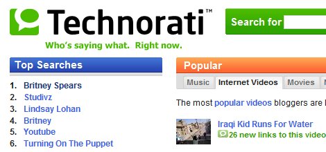 Was zieht immer? Richtig, Sex und nackte Frauen. Und so ist StudiVZ nicht mehr die Top-Suchanfrage auf Technorati, sondern Britney Spears. Da war sie wohl mal wieder mit ihrer dicken Freundin Paris (und Lindsay Lohan) unterwegs und hatte keine Unterwäsche an. Irgendwie landete dann eine Kamera mit Serienbildfunktion in ihrem Schritt und voila … die Blogosphäre hat etwas neues zum sabbern ;-)