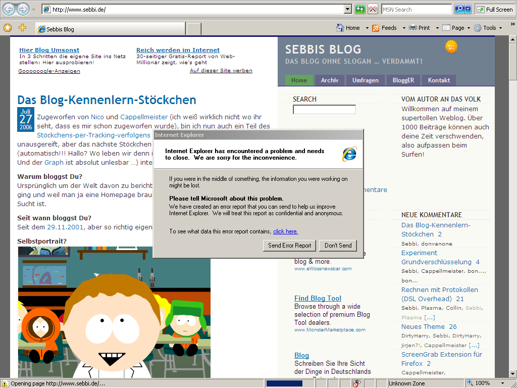 Stürzt der wirklich ab, wenn man mein Blog besucht? Kann das jemand mit IE7 mal verifizieren?
