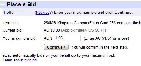 In diesem Bild sieht man: es wurde $1,05 AU (mit Komma!) eingegeben. Der Hinweis auf das Minimalgebot zeigt immerhin schon mal an, dass ein Punkt verwendet wird.