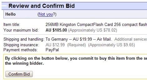 Ebay hat aus dem vermeindlich kleinen Betrag dann doch $105,00 AU gezaubert. Und das obwohl Ebay weiß aus welchem Land man kommt. Da müsste doch mindestens eine wahrnehmbarer Hinweis auf die Schreibweise der Zahlen stehen, oder nicht?
