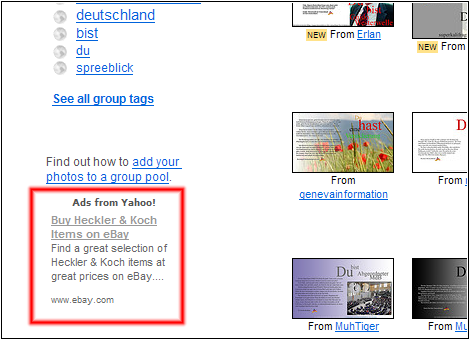 Die Werbung, die Yahoo im Flickrpool „Du bist Deutschland“ anzeigt … Waffen bei Ebay?