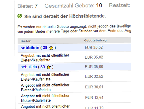 „Angebot mit nicht öffentlicher Bieter-/Käuferliste“ … was soll denn das sein? Ein Mittel damit Ebay-Verkäufer untereinander unerkannt mitbieten können um den Preis hochzutreiben?