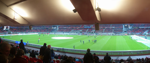Tja und dann schossen die Leverkusener auch noch das erste Tor. Nach der Halbzeitpause dann auf unserer Seite ein Elfmeter, der auch nur recht knapp ein Tor wurde und kurz darauf schlamperte der Glubb schon wieder und lies ein Tor zu. 2:1 der Endstand und das obwohl eigentlich hauptsächlich der FCN das Spiel bestimmte. Wie auch immer … viele Fans der Gäste waren nicht angereist und so fielen diese Gegentore kaum auf, während bei dem einzigen Tor des FCN alle schrien wie blöd ;-) Zum Abschluss ging der Ball auch noch nur gegen die Latte der Gäste, dabei wäre das so ein schönes Tor gewesen und dann wär’s immerhin unentschieden … muss ich nun so lange ins Stadion bis der Club mal gewinnt, oder? ;-)