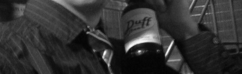 Danach gab’s die wirkliche Halloween Party im E-Werk mit einer reizend aussehenden Gastronomin … zum Anbeißen lecker. Zur Simpsonsdeko auf der Clubbühne gab es Duff Beer, Serienfolgen auf Bildschirmen an der Wand und eine Ecke in der man das neue Computerspiel ausprobieren konnte. Hätte ich doch mein Spiderschwein-Shirt anziehen sollen ;-)