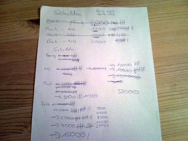 Vermutlich ist die Krise bzw. deren Grund gar nicht so weit weg vom populären Pokerspiel. Naja, jedenfalls haben wir gestern versucht das ganze nachzuspielen. Nahezu unbegrenzte Kredite von der Bank und von Spielern an die Bank. Inflation durch Blinderhöhung. Alles war dabei und nächstes Mal machen wir das mit Excel und fügen noch Optionen auf Gewinne anderer Spieler und Steuern ein, damit es einen Staat geben kann, der mit eben diesen Geldern versuchen kann das System zu retten. Oh yeah!