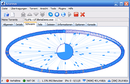 Torrent heißt auf Deutsch ja so viel wie reißender Strom, Sturzbach oder auch Sturzflut. Bei Chip.de gibt es die Demo von Unreal Tournament per normalem Download und eben auch als Sturzflut. Hab mich für letzeres entschieden und es wird seinem Namen durchaus gerecht … schneller kommt man an die 741 MB bei den derzeit stark überlasteten Servern wohl nicht heran. Muss sich nur noch Zeit finden, das Spiel kurz anzutesten …