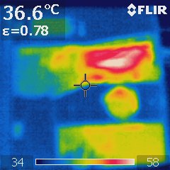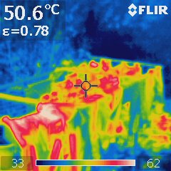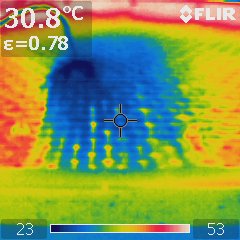 (Hausdach … hot!!!!)Erstaunlich wie warm die Bauteile um die CPU herum sind und wie wenig das Begießen des Daches bringt. Schon nach wenigen Minuten war es wieder so warm wie vorher.