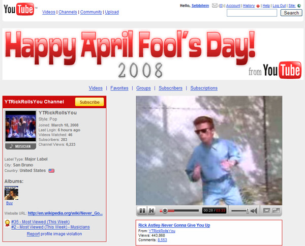 Jetzt langt’s aber wirklich … Youtube verarscht heute seine Besucher indem jedes Video unter „Featured“ auf dieses Video verlinkt. Grrr … Never gonna give you up … blabla.